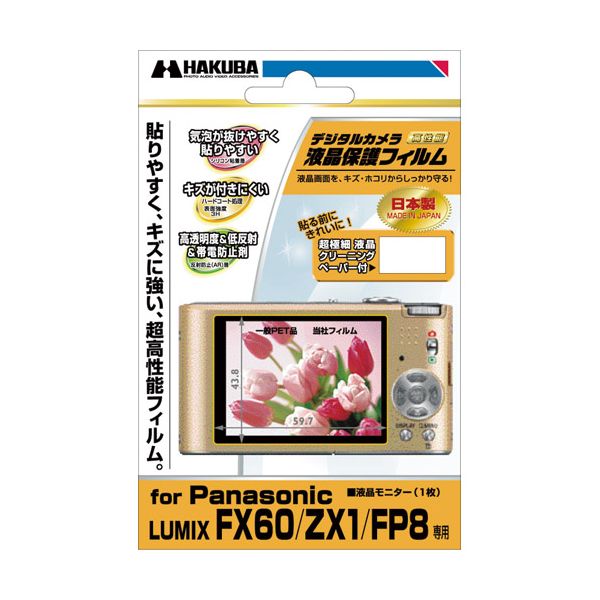 ★15時迄の代引注文は即日発送★ハクバ DGF-PFX60 デジタルカメラ用液晶保護フィルム 【即納】 [HAKUBA DGFPFX60 パナソニック LUMIX DMC-FX60/DMC-ZX1/D 価格: 848円 レビュー評価:0.0 レビュー数:0 [在庫状況] 下方の「納期表示のご案内」をご覧下さい [特徴] ■プロ仕様ハードコート(耐擦傷性) カメラバッグやストラップなどによるフィルム表面の「すり傷」や「爪あと」などが残りにくいクラス最高水準の表面硬度と保護力を実現。液晶画面の情報を最大限に発揮する透過率と、本来の目的である液晶保護を高次元で両立しました。フィルムの耐久性が高い為、フィルムの張替えが少なくできます。 ■ブルーレイヤー反射防止コーティング(表面反射軽減) フィルムの表面反射を軽減するコーティング技術です。フィルム表面への人物の映り込みを軽減するなど、プラズマテレビの画面にも採用されています。また、液晶画面を表示させるとブ Supported by 楽天ウェブサービス |